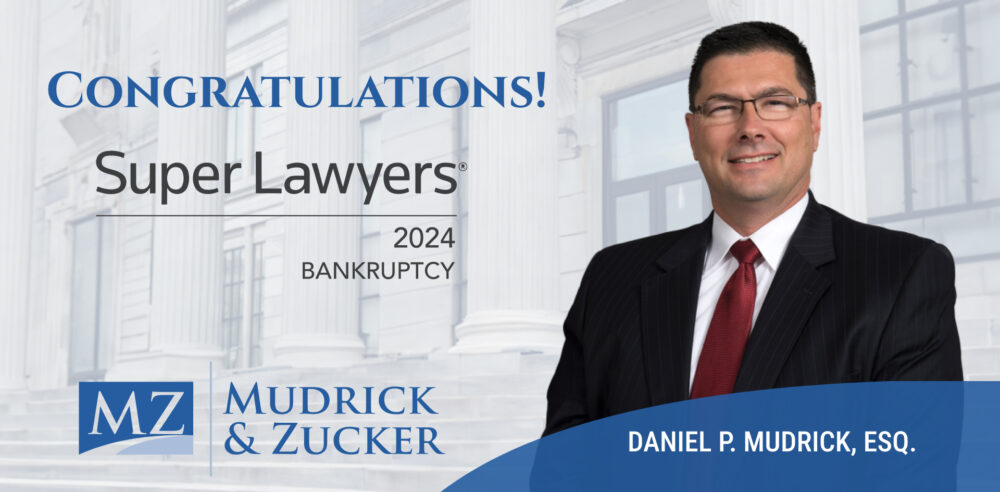Mudrick & Zucker, P.C. is pleased to announce Daniel P. Mudrick, Esq. has been selected for the 2024 Super Lawyers list. Specifically, Attorney Mudrick has been named a 2024 Super Lawyer for Bankruptcy.